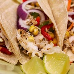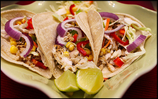 The corn tortillas can be warmed for about 15-20 seconds on each side and moved to a dish and covered with a clean towel to keep warm until ready to serve. Assemble the tacos with fish and slaw and serve immediately.