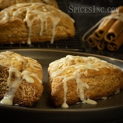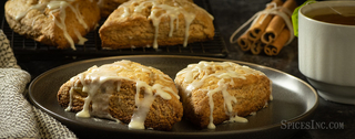 12. While scones are baking, make icing by stirring powdered sugar together with remaining cinnamon, two Tablespoons heavy cream and zest from one lime. If icing is too thick, add more cream, or some fresh lime juice, in small increments until it is the desired consistency.